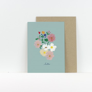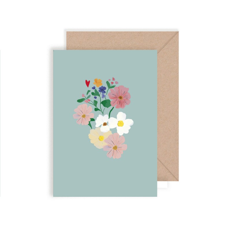 Set against a soothing sea-green background, the flowers bloom and convey a simple, warm message.