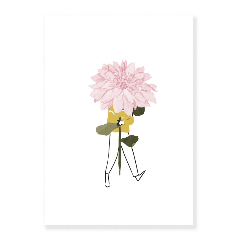 A delicate pink dahlia worn like a treasure. This minimalist illustration celebrates the beauty of generous flowers and the elegance of a moment suspended in time, where a single flower is enough to brighten the day. Fine, refined lines create a poetic composition that evokes the sweetness of sunny days and the desire to bring a little bit of nature into your home.