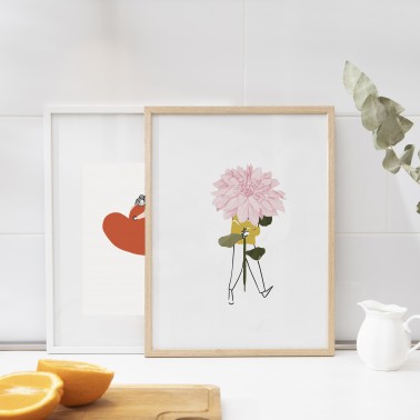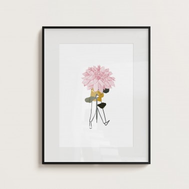 Un dahlia rose délicat porté comme un trésor. Cette illustration minimaliste célèbre la beauté des fleurs généreuses et l'élégance d'un instant suspendu, où une simple fleur suffit à illuminer la journée. Un trait fin et épuré pour une composition poétique qui évoque la douceur des beaux jours et l'envie de ramener un peu de nature chez soi.