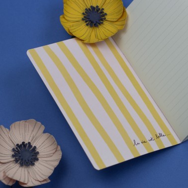 Format 10,5 x 14,8 cm à la française Piqûre à cheval 32 pages lignées / 32 pages vierges